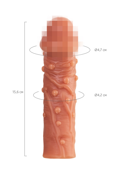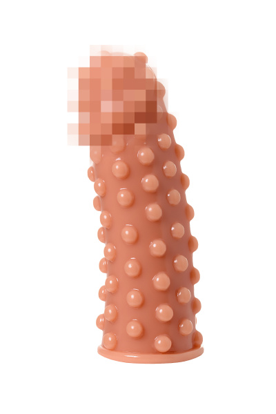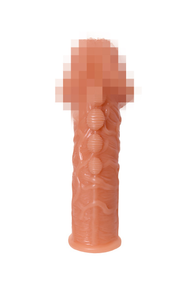 Насадка KOKOS реалистичная с дополнительной стимуляцией, TPE, телесная, 15.6 см с тремя бугорками