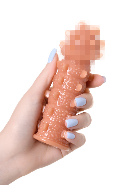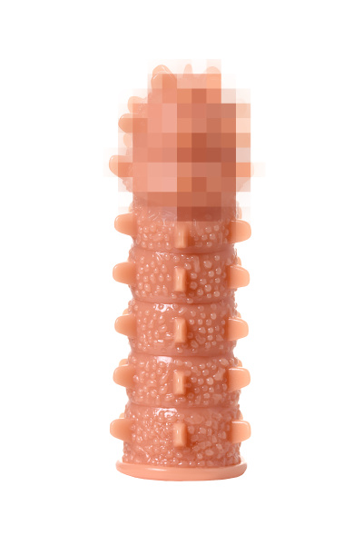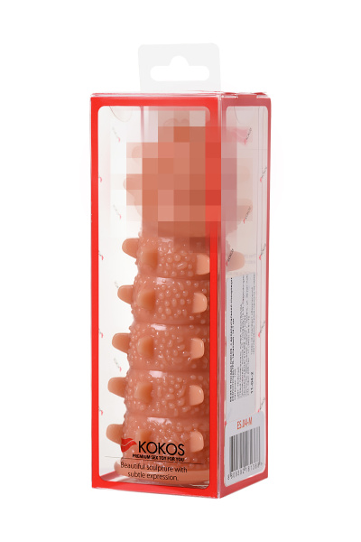 Насадка KOKOS реалистичная с дополнительной стимуляцией, TPE, телесная, 15.6 см с мягкими шипами