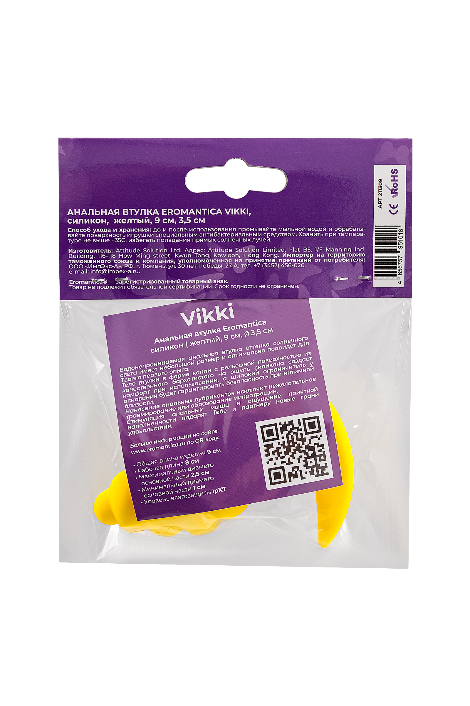 Водонепроницаемая анальная втулка от Эромантики оттенка солнечного света имеет небольшой размер и оптимально подойдет для Твоего первого опыта. Тело втулки в форме капли с рельефной поверхностью из качественного бархатистого на ощупь силикона создаст комфорт при использовании, а широкий ограничитель у основания будет гарантировать безопасность при интимной близости. Нанесение анальных лубрикантов исключит нежелательное травмирование или образование микротрещин. Стимуляция анальных мышц и ощущение приятной наполненности подарят Тебе и партнеру новые грани удовольствия.Рекомендуем использовать до и после применения - дезинфицирующее средство для игрушки, чтобы обеспечить длительное скольжение и комфорт интимных отношений, рекомендуем использовать анальную смазку на водной основе. Хранить при температуре не выше 35 градусов, избегать попадания прямых солнечных лучей. Перед хранением необходимо хорошо просушить
