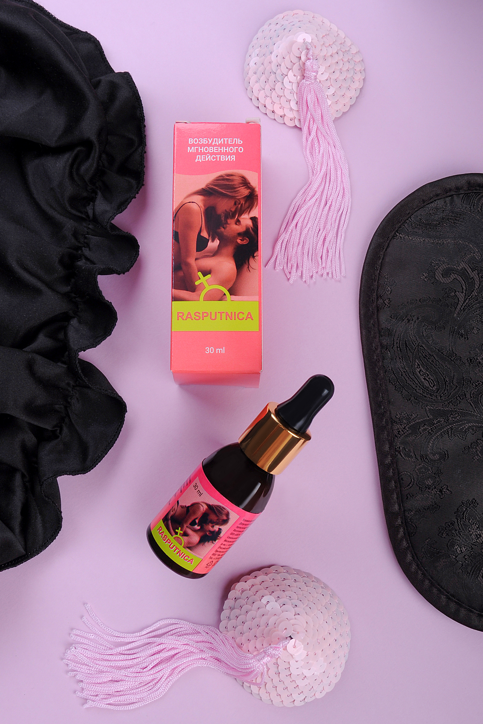 RASPUTNICA- возбуждающие капли, которые воздействуют на женский организм, тонизируют и пробуждают чувственность, усиливают чувствительность во время полового акта. Компоненты препарата вызывают у женщин мощное половое возбуждение, и усиливает влечение к мужчине. Помимо этого средство позволяет получить больше удовольствия от секса - L-аргинин и корень женьшеня стимулируют микроциркуляцию в области половых органов и обеспечивают приток крови к ним, что усиливает приятные ощущения и способствует достижению оргазма. Способ приготовления: 45 капель(3 мл) концентрированного напитка развести в 100-200 мл воды или любого безалкогольного напитка. Перемешать, дождаться полного растворения содержимого(1-2 минуты) и выпить за 30 минут до полового акта. Не принимать в вечернее время.