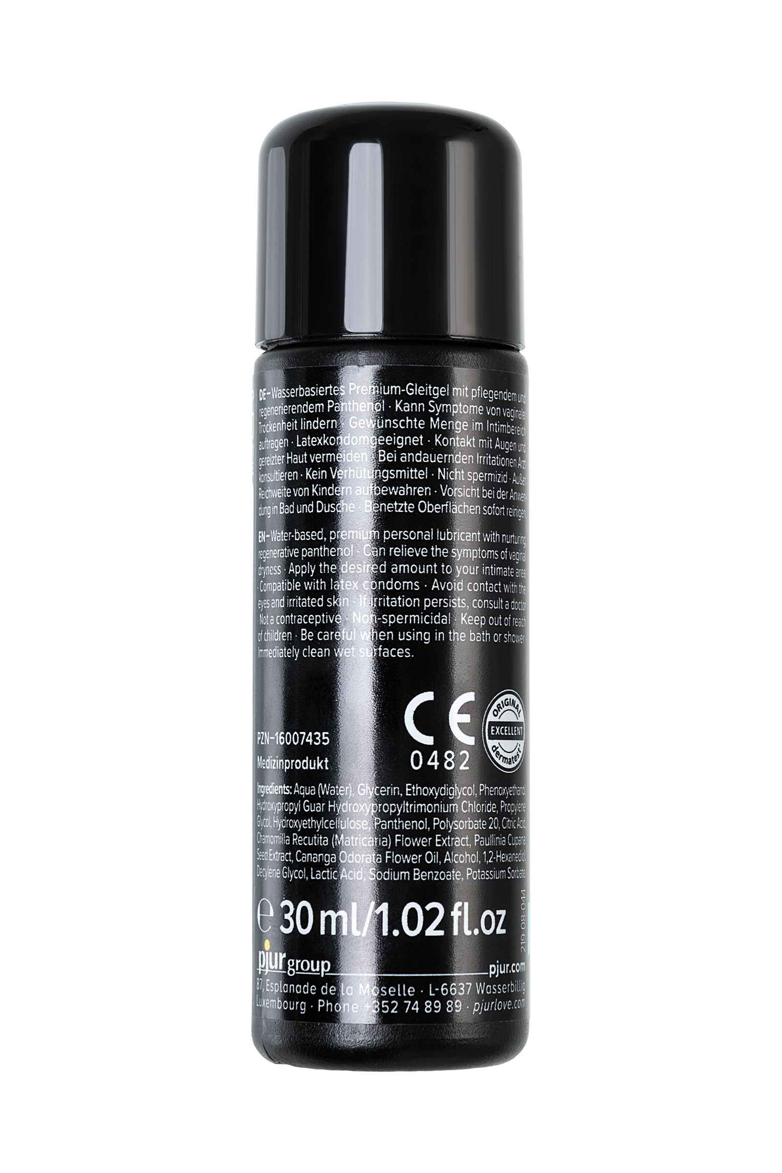 Премиальный лубрикант на водной основе, предназначенный для предотвращения сухости во время полового акта, а также для увлажнения и заживления кожи. Pjur Panthenol без запаха и содержит уникальную смесь питательного регенерирующего пантенола, который обеспечивает бережный уход во время интимной близости. Гель отличается превосходными смазывающими свойствами без липкости и подходит тем, кто любит лубриканты на водной основе и бережный уход, а также двойное увлажнение кожи и слизистой. Рекомендуется применять в период менопауз, во время гормональной терапии, при стрессах и дискомфорте из-за сухости влагалища. Обладает длительным скольжением, оставляя приятное чувство свежести без липкости. В составе лубриканта нет отдушек и ароматизаторов, также он совместим со всеми видами презервативов и секс-игрушек.